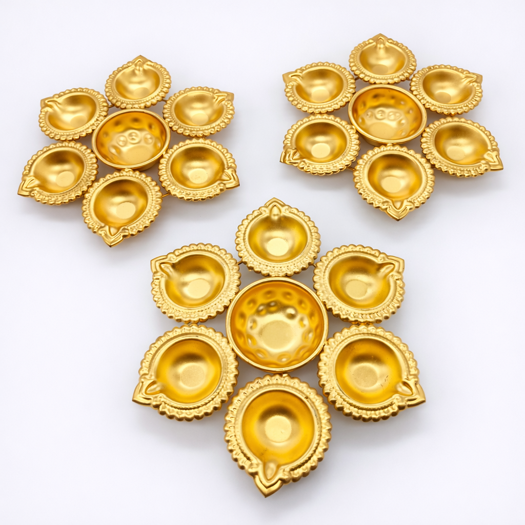 Each diya is handcrafted, so minor variations in finish, color, or detailing may occur. Small surface marks are natural with metal products and do not affect functionality. Actual product color may slightly vary due to photographic lighting and screen resolution.