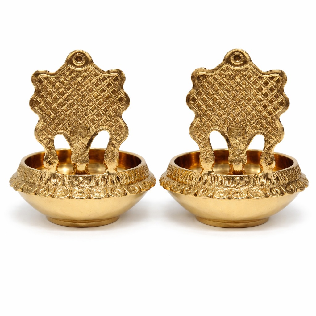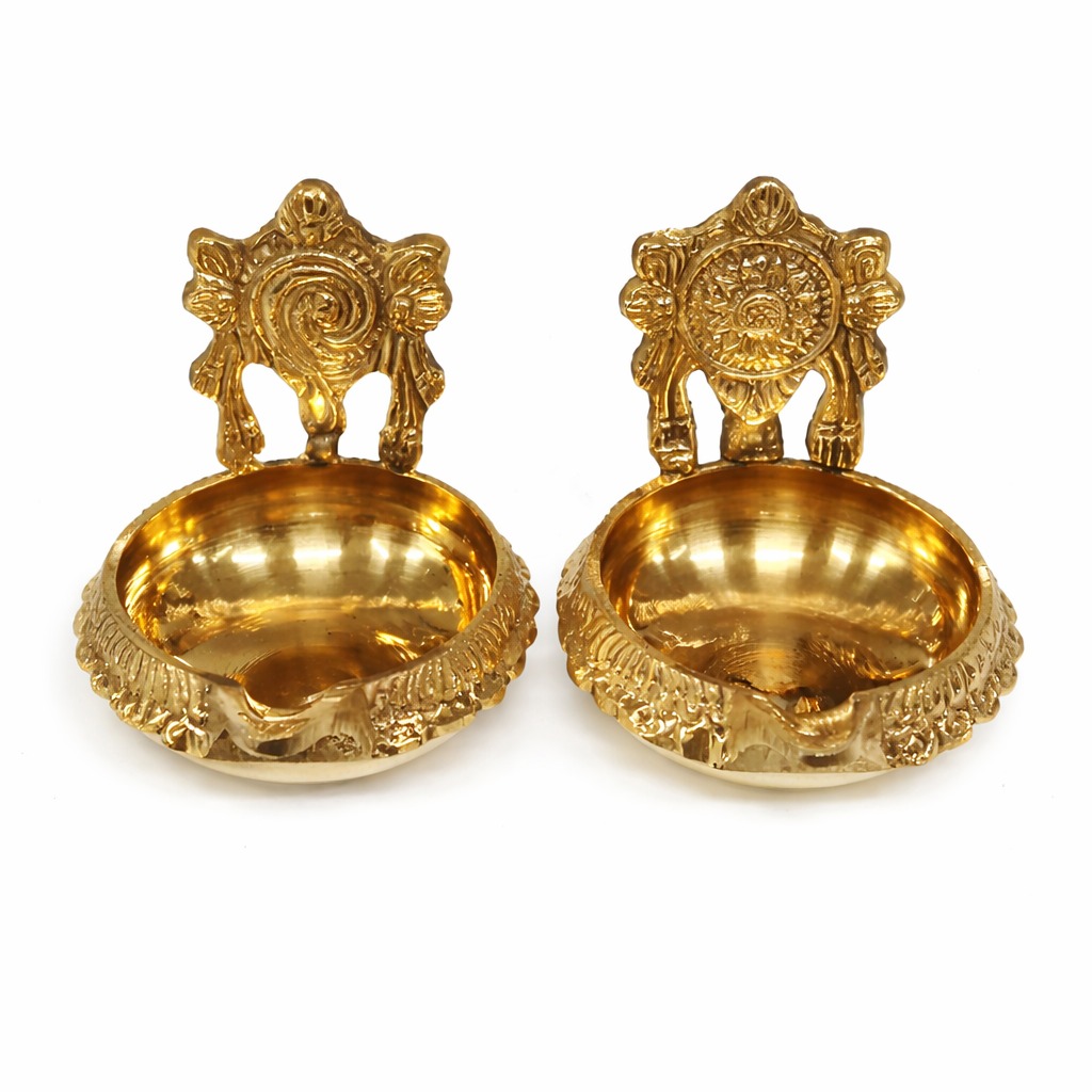 Brass Kuber Diya Set of 2 with Shanku Chakra | Pooja Oil Lamps