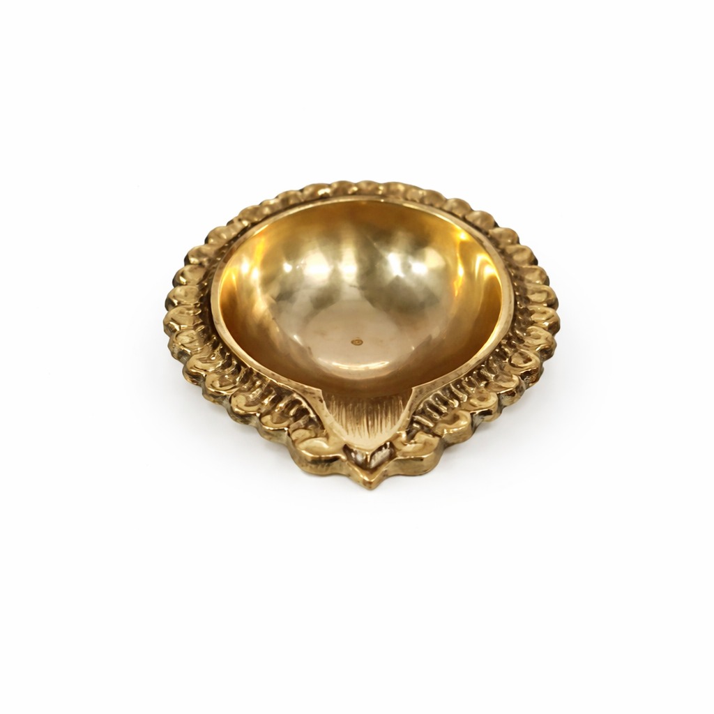 The simple yet elegant design focuses on functionality, ensuring a steady flame that contributes to a calm and sacred atmosphere. The brass material not only adds a classic aesthetic but also ensures heat resistance and stability during use. Its polished finish enhances its visual appeal, making it suitable for both ritualistic and decorative purposes.