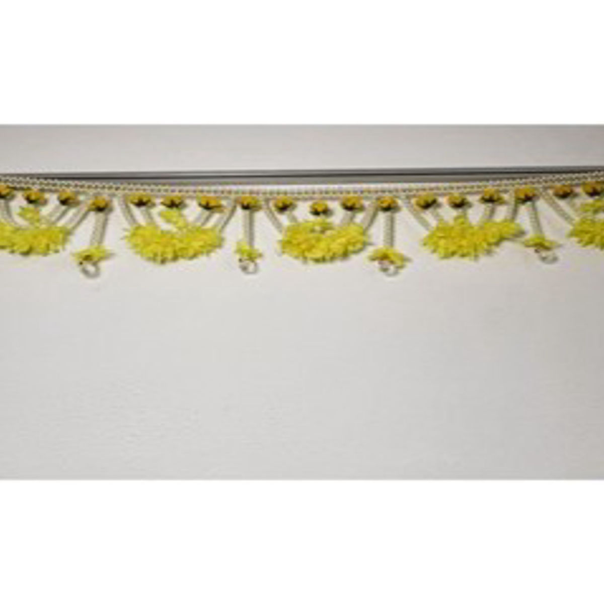 Handcrafted decorative pom-pom toran featuring bright orange pom-poms, pink hanging accents, and golden beads with layered chains. Measuring 39 inches (3.25 ft), this festive piece is perfect for decorating entrances, pooja rooms, and special occasions like Diwali, Navratri, and weddings.