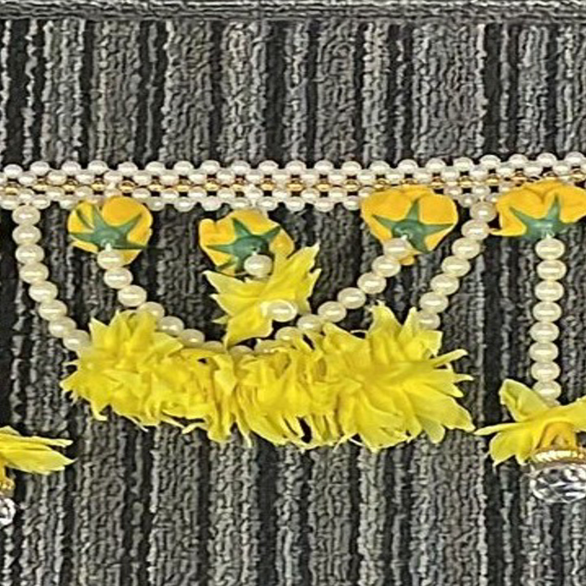 Material: Decorative pom-poms, beads, thread and plastic embellishments