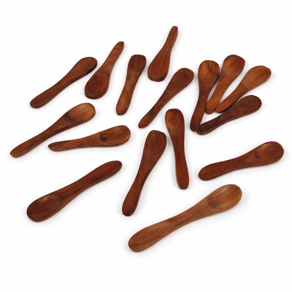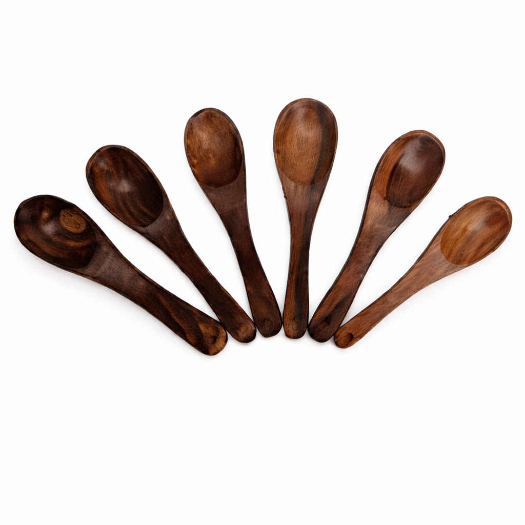 Mango wood is known for its pleasing grain patterns and earthy tones, giving each spoon a naturally unique look. The handmade finish enhances the authenticity of the set, adding a subtle premium feel that pairs beautifully with wooden trays, ceramic cups, or metal spice containers. Lightweight and comfortable to hold, these spoons are designed to fit seamlessly into daily routines, offering ease of use for small-portion serving tasks.