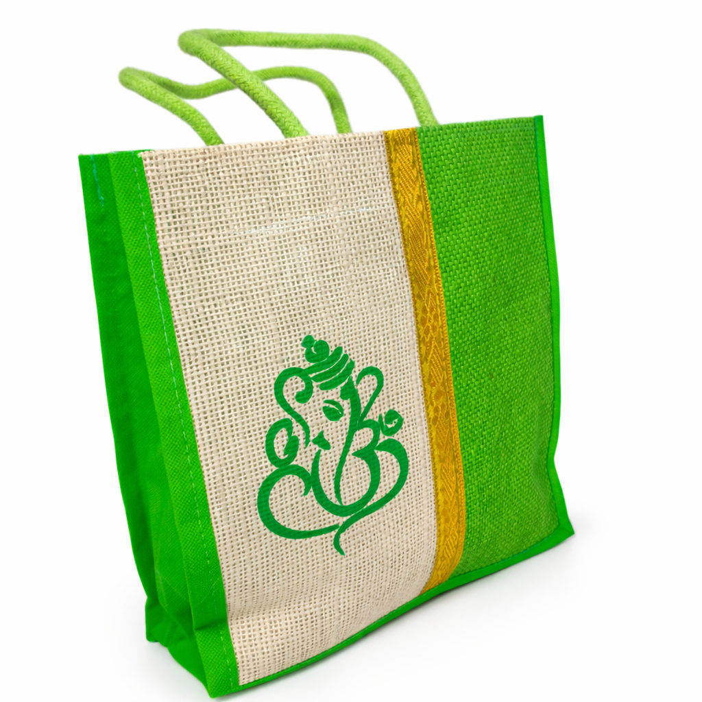 Ganesha Print Jute Gift Bag | Eco-Friendly Reusable Return Gift Bag –Rope Handle