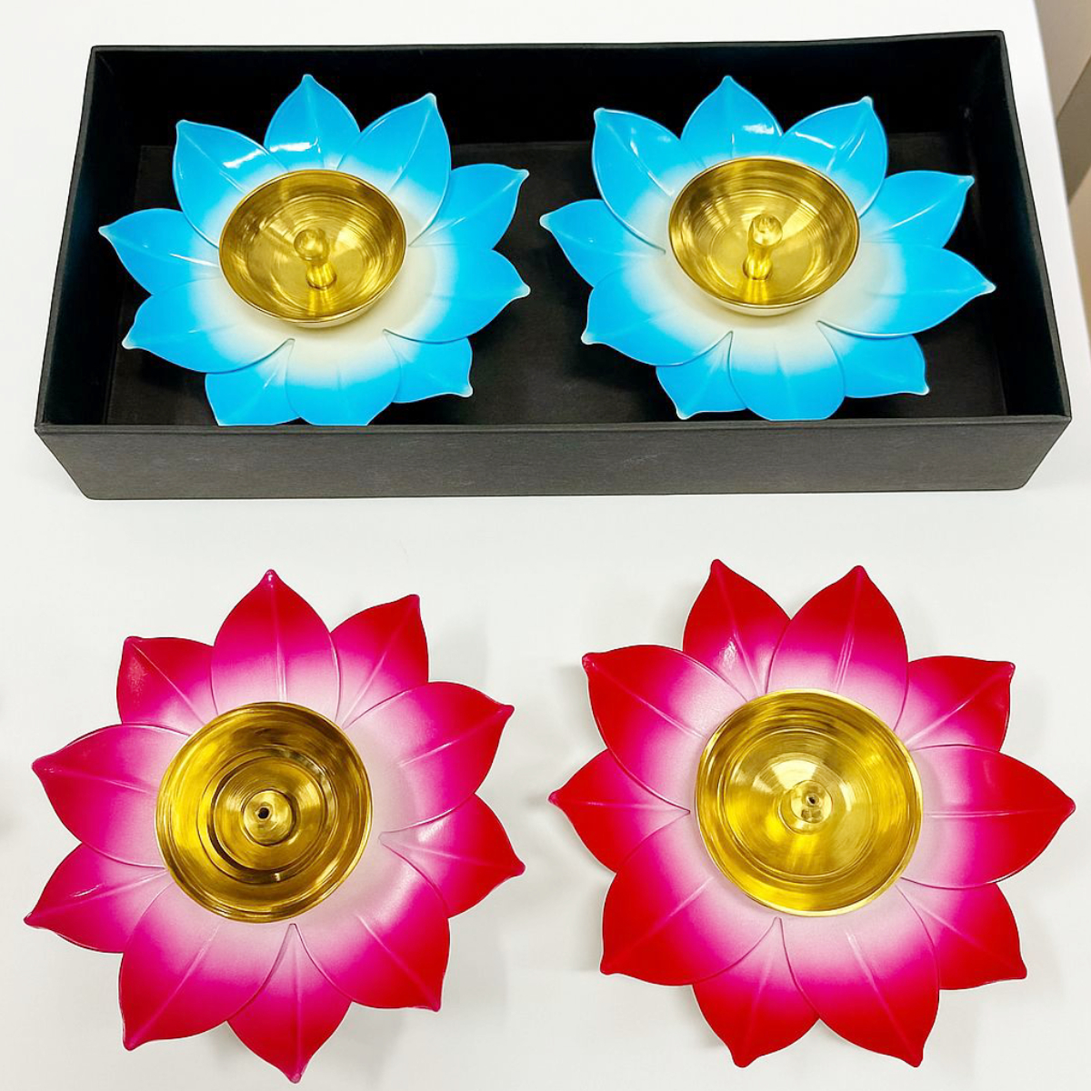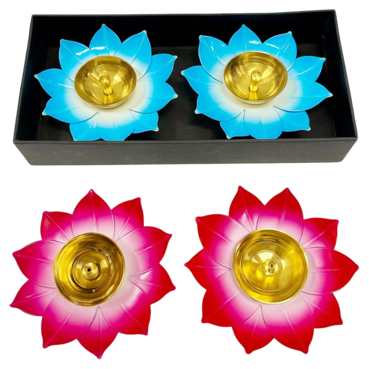 Enhance your spiritual ambience with this Lotus Design Brass Oil Lamp Diya. Beautifully handcrafted from premium quality brass, this diya is designed with an elegant lotus motif and hand-painted detailing. It is perfect for lighting during Pooja, temple rituals, Diwali, Navratri, weddings, and other festive occasions. The diya comes in a protective box, making it an ideal gift choice for family, friends, and loved ones. With a size of 10 cm and a pack of 2 pcs, these diyas add a traditional charm to your home décor while being durable and reusable.