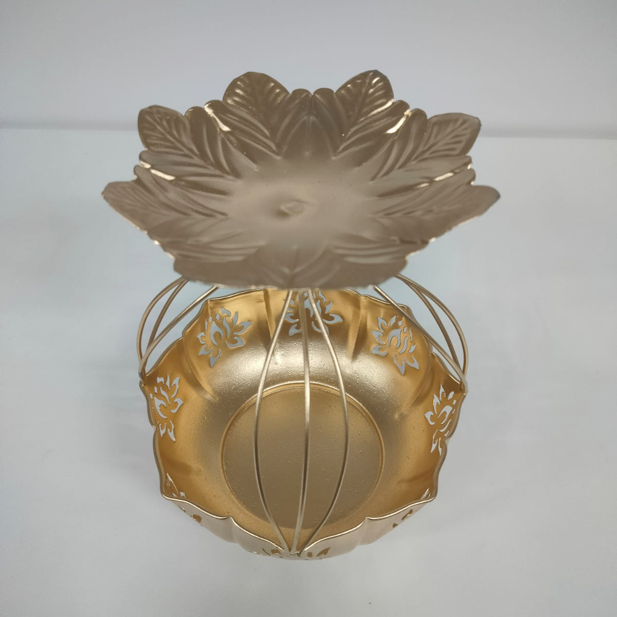Metal Urli Bowl with Floral Design & Tealight Candle Holders | Ideal for Home Décor