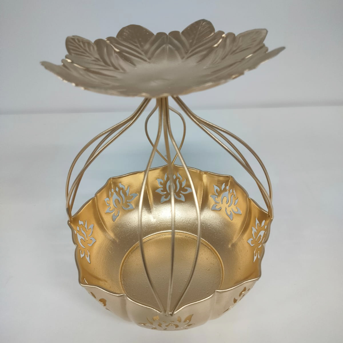 Enhance your festive and everyday home décor with this Handcrafted Metal Urli Bowl featuring a beautiful floral design and matching tealight candle holders. Designed by skilled artisans, this elegant Urli adds a traditional touch to your space and creates a warm, inviting ambiance when decorated with water, flowers, or tealights.
