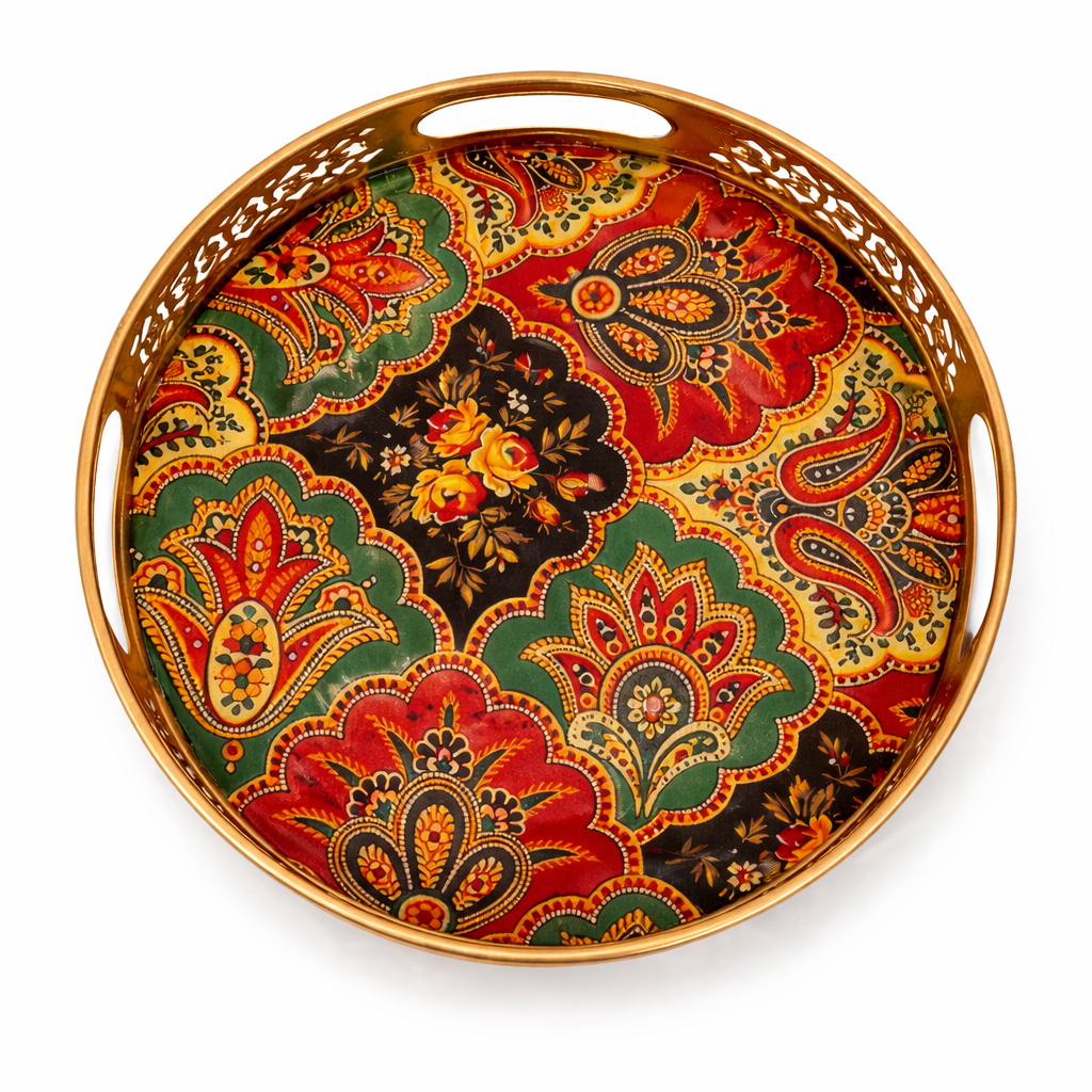 The Printed Decorative Metal Tray is a versatile and stylish addition to any home, designed to combine functionality with artistic appeal. Crafted from lightweight yet durable metal, this tray features an eye-catching printed surface that enhances its decorative value while maintaining everyday usability. The compact 8-inch size makes it ideal for serving, organizing, or displaying items in a neat and elegant manner.
