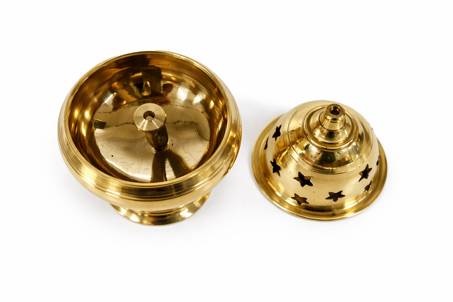This incense burner is ideal for daily pooja, meditation, and spiritual rituals, offering a serene sensory experience through gentle fragrance diffusion. Its classic design and cultural relevance also make it a meaningful gifting option for festive occasions, religious ceremonies, housewarmings, and spiritual milestones. Whether used regularly or displayed as a decorative accent, the Pure Brass Incense Burner with Star Cut Design brings a sense of tranquility, tradition, and elegance to any sacred space.