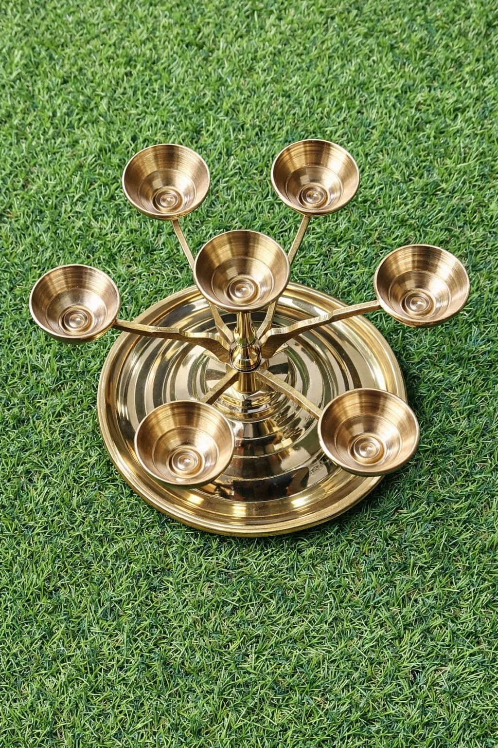 Illuminate your sacred space with the Pure Brass Seven-Face Diya Lamp (Saptha Deebam), a timeless symbol of divinity, positivity, and spiritual enlightenment. Expertly crafted from high-quality pure brass, this traditional pooja deepam features seven diya faces, representing prosperity, wisdom, and divine blessings.