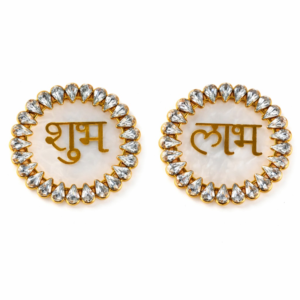 The Shubh Labh Decorative Set is a traditional and auspicious décor element designed to enhance the entrance of homes during festive and religious occasions. Representing prosperity and good fortune, the words “Shubh” and “Labh” hold deep cultural significance and are commonly placed at entrances to invite positivity and blessings.