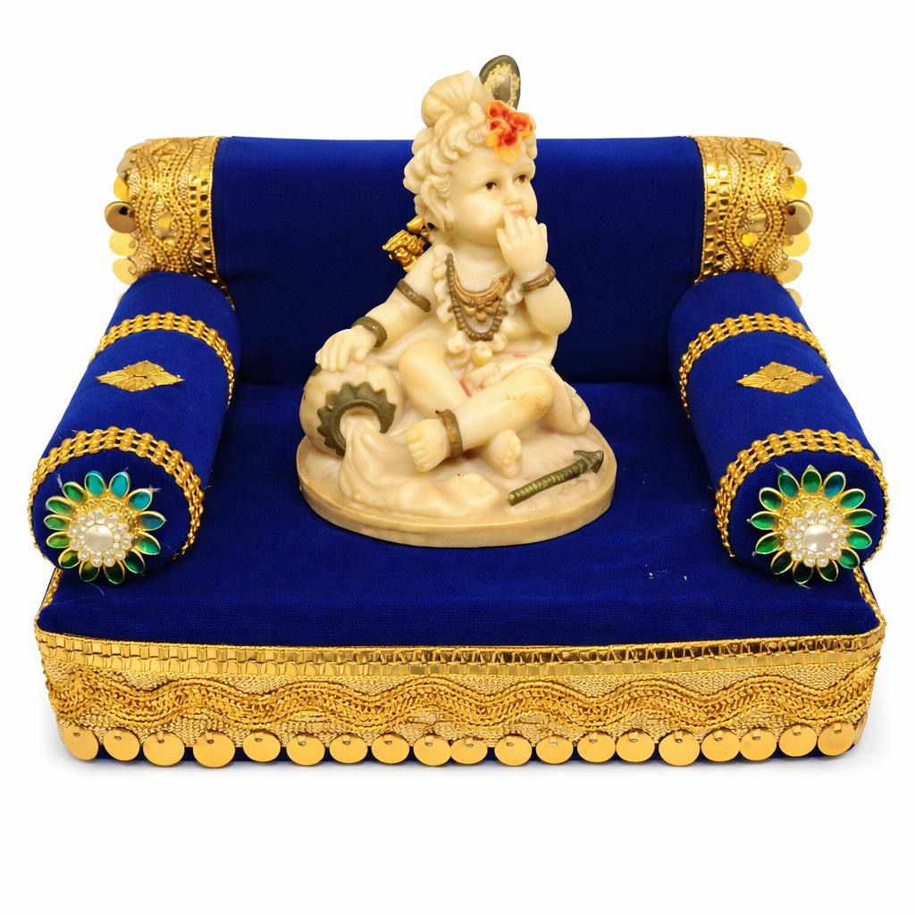 Ideal for daily worship, Janmashtami celebrations, and religious gifting, this singhasan represents devotion and reverence. Its traditional design and symbolic color make it a meaningful addition to any Laddu Gopal pooja setup.